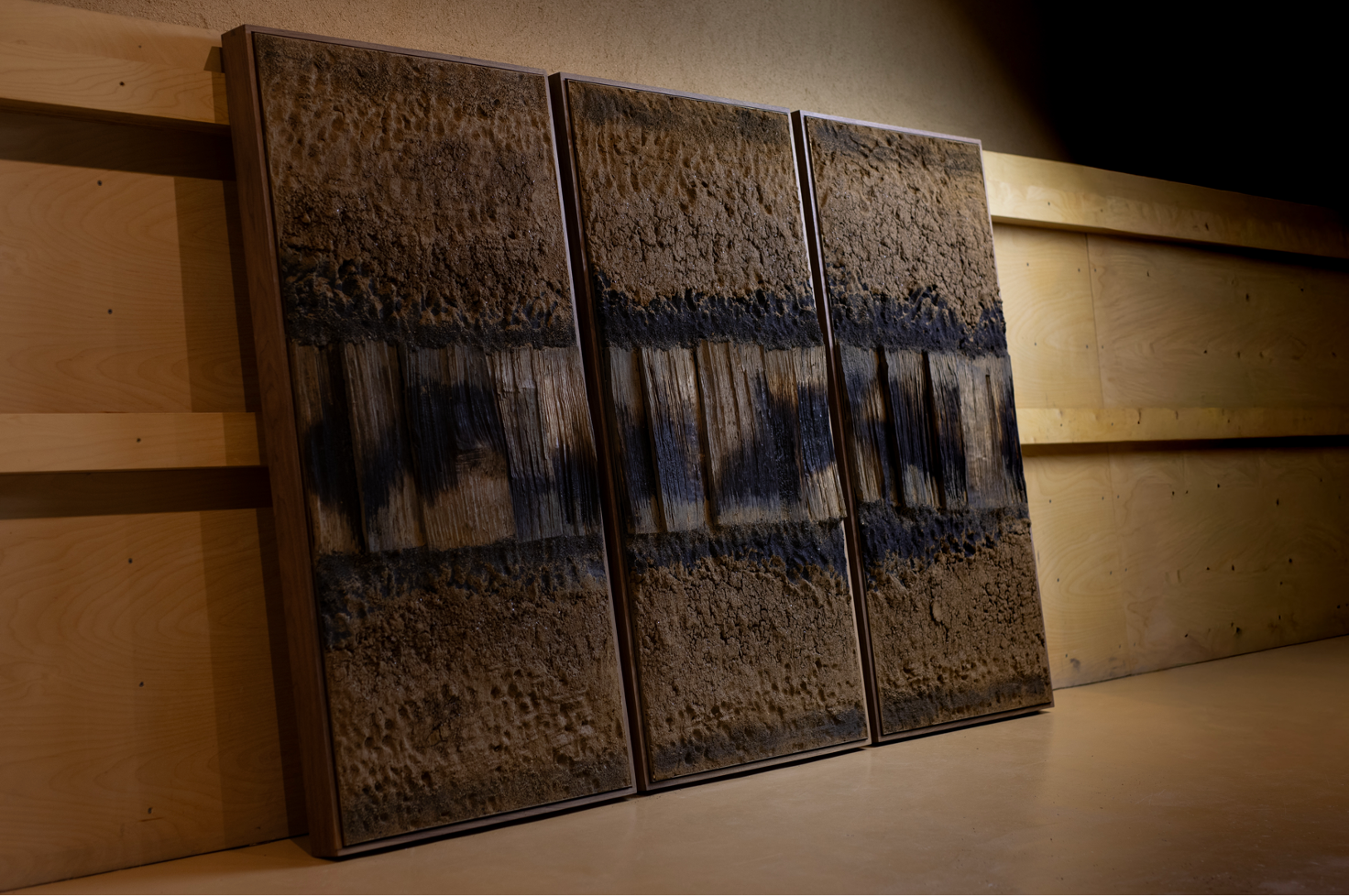 Golden Earth Studio offers a bespoke commission service that utilises the construction byproducts of our clients’ homes. To explore the possibilities of commissioning a unique piece of artwork to compliments your interior space, get in touch via our contact form or email.