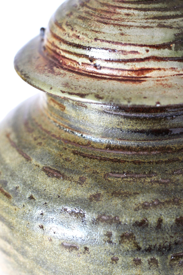This soda fired Ginger Jar is made from a blend of 60% London Clay and 40% Reduction St Thomas Clay. The Unique satin and gloss glaze finish is created by the movement of soda ash inside the kiln.